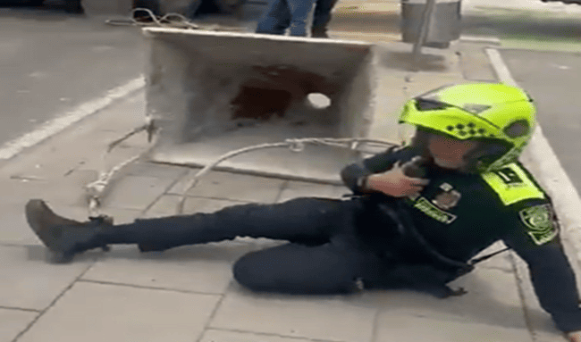 “En el momento en que les advertí que estaban cometiendo varias irregularidades y poniendo en riesgo la vida e integridad de los transeúntes y de los mismos operarios, se desplomó una tolva sobre uno de los uniformados”, relató el concejal a través de sus redes sociales.