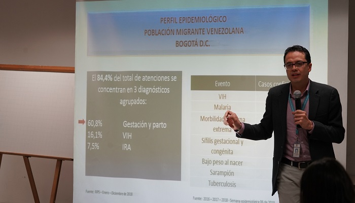 A su vez, el Director de Epidemiología, Análisis y Gestión de Políticas de Salud de la SDS, Manuel Alfredo González, hizo un análisis de la situación de salud ante el fenómeno migratorio en el Distrito Capital y definió las necesidades que tiene la población migrante que está llegando a la ciudad.