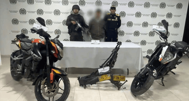 La Policía Metropolitana de Soacha, a través de la Policía Judicial y en coordinación con la Fiscalía General de la Nación, detuvo a un hombre por el delito de receptación. El operativo permitió recuperar dos motocicletas robadas y varias autopartes avaluadas en 25 millones de pesos.