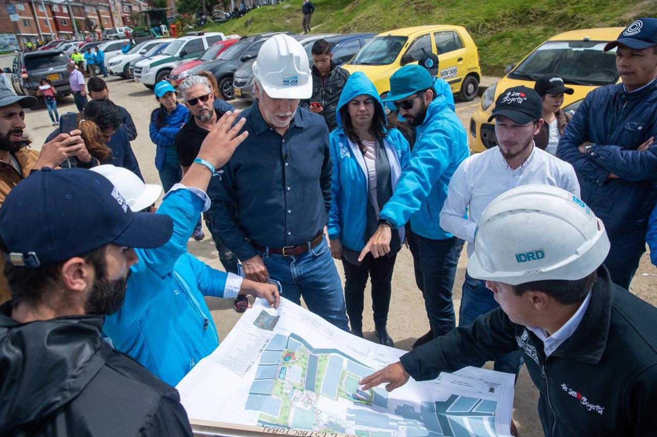 «Aquí estamos en Miravalle, en Usme, junto al colegio que hicimos en la pasada Alcaldía y donde estudió el alcalde local. Acá estamos en equipo con Recreación y Deporte haciendo varias canchas de fútbol en pasto sintético, pequeñas, skate park, juegos infantiles, un superparque junto al colegio en un potrero abandonado. Y así como este hay cientos de parques en la ciudad que hacen que haya más felicidad y seguridad», afirmó Peñalosa.