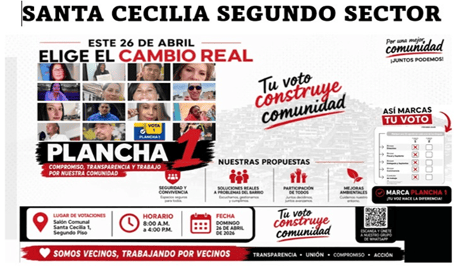 En el marco de las elecciones comunales, la Plancha 1 del barrio Santa Cecilia II sector, en la localidad de Suba convocó a la comunidad a participar en la jornada electoral que se realizará el próximo domingo 26 de abril de 2026.