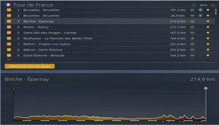 Sigue la emoción de la carrera francesa con una etapa larga de 214 kilómetros. Eta etapa tiene algo que tiene a más de uno en que hacer, puesto a que el inicio de la etapa es plana y los últimos 50 km se tornan durísimos con duras subidas cortas y 4 puertos de montaña (3 de tercera y 1 de cuarta categoría). La llegada es durísima y pica hacia arriba los últimos 500 metros, así que no va a ser una llegada para sprinters llanos. Esta etapa pone a corredores con opciones de llegar en la fuga gracias a los tiempos recogidos en la crono por equipos, pues algunos decidieron rezagarse para lograr alcanzar algo el día de mañana.
