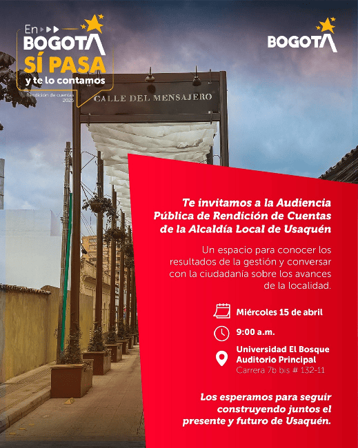 El encuentro se llevará a cabo el miércoles 15 de abril a las 9:00 de la mañana en el auditorio principal de la Universidad El Bosque, y está abierto a todos los habitantes interesados en conocer de primera mano la gestión de la administración local.
